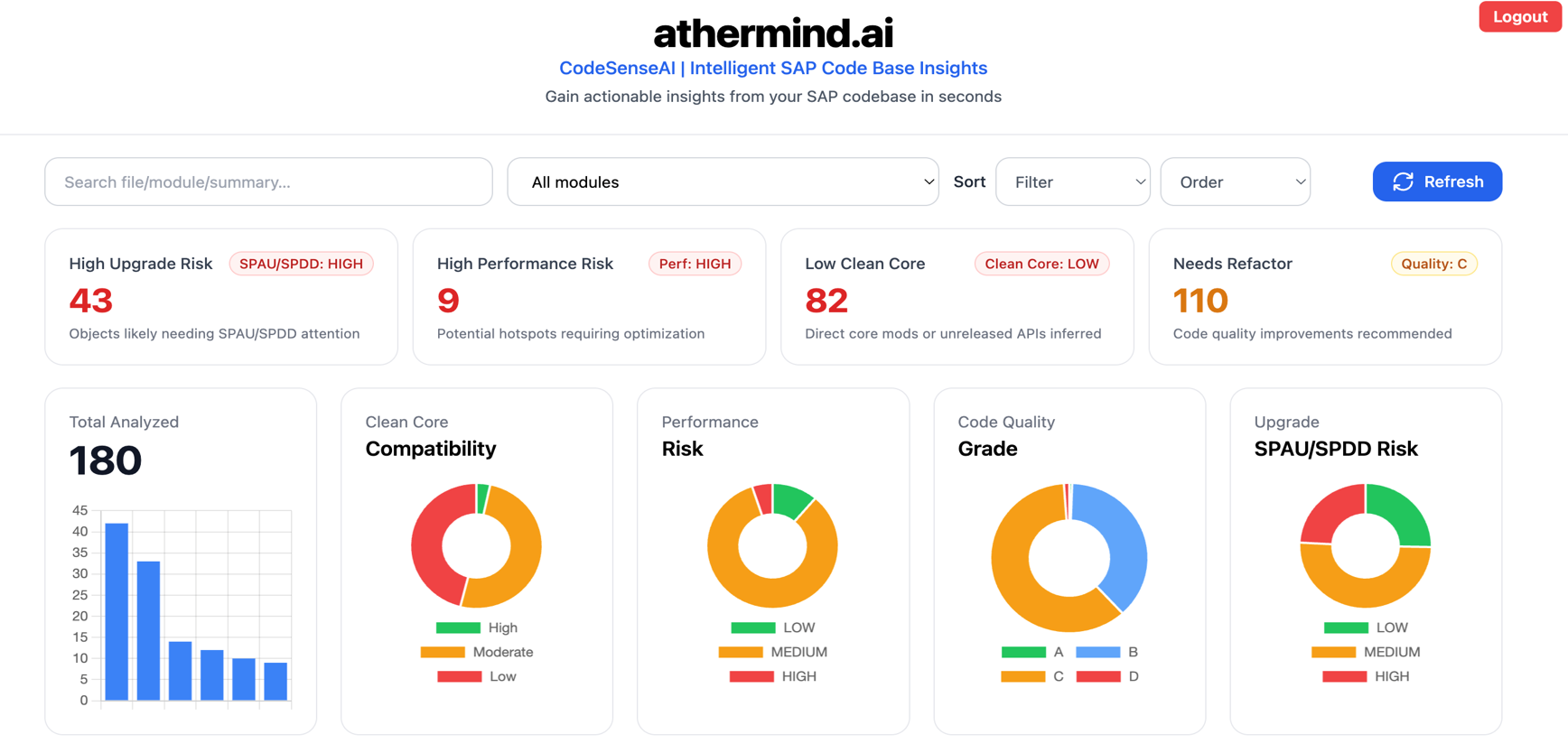 Code Sense AI is designed to help SAP customers manage, analyze, and optimize custom ABAP code, during their S/4HANA migrations, clean core journeys, and modernization programs.