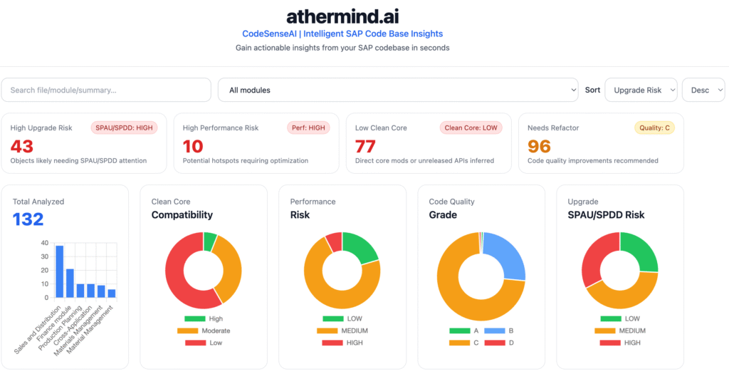 CodeSenseAI is an AI-driven platform designed to help SAP customers manage, analyze, and optimize custom ABAP code, during their S/4HANA migrations, implementations, clean core journeys, and modernization programs.